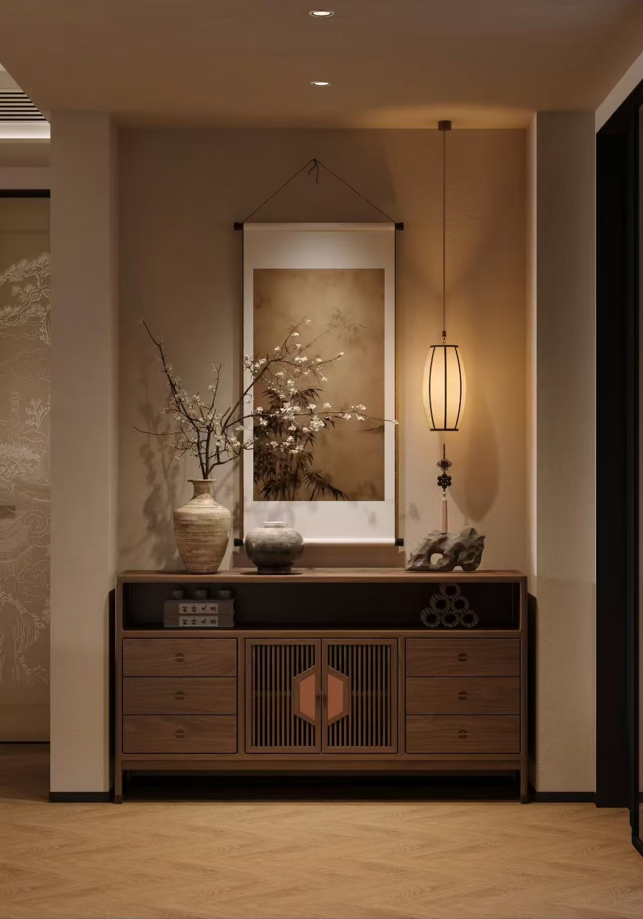 The entryway is the “Qi Gate” of the soul. Our design philosophy focuses on the transition between the chaos of the world and the stillness of the home. By manipulating light and void, we create a sensory buffer that filters out external pressure, ensuring that the moment you cross the threshold, your energy returns to its center.